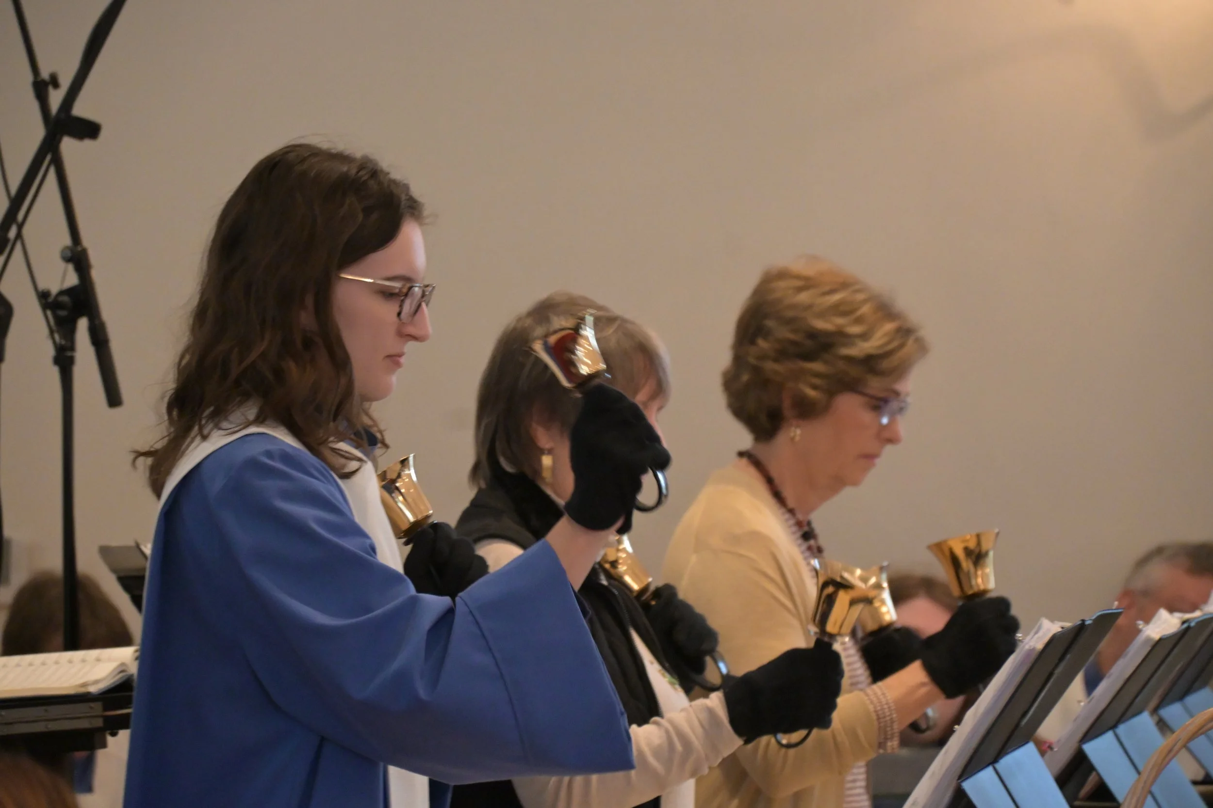 Our bell choir gathers seasonally to prepare offerings for worship and special occasions. Each person holds just a few notes, and together a whole song emerges.