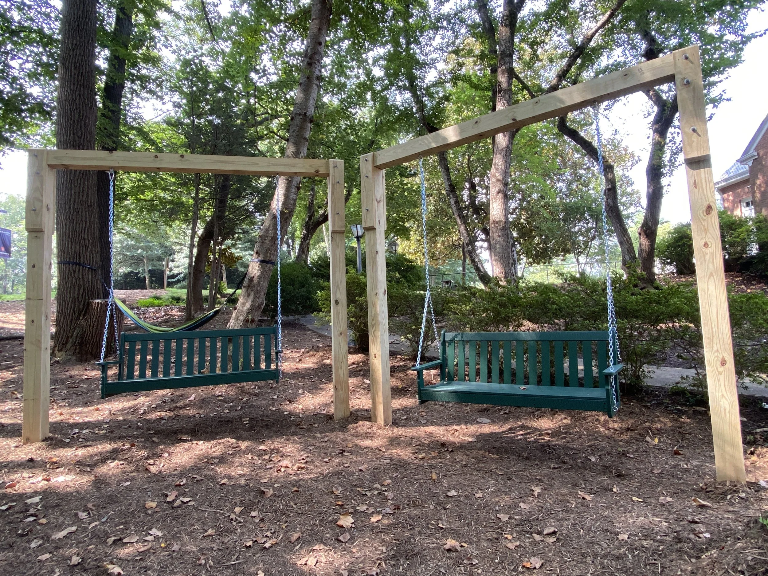 New additions this week at the Saint Peter’s playground include climbing features, a stocked playhouse, and a hammock for downtime.